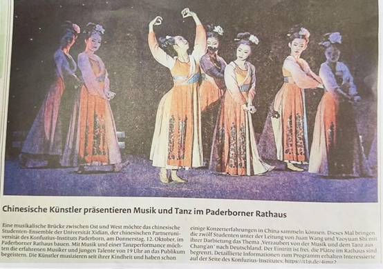 “乐舞醉长安”文化交流演出不仅是一场文化盛宴,也是中德友谊的象征。云顶国际vip.888访问团以精湛的演艺技巧和富有内涵的节目内容,讲述精彩纷呈的中国故事,展现了多元的中国文化魅力。通过这次活动,也向世界展示了西电的风采和实力,让更多人了解和喜爱中国文化,促进了国际间的交流和发展。活动被新威斯特法伦帕德博恩《红报》《绿报》等德国当地主流媒体报道,产生了良好的传播影响。