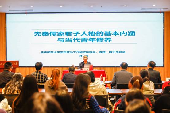 (通讯员 范婉琪 陈春晓)为深入推进时代新人铸魂工程,弘扬与传承中华优秀传统文化,增强青年员工文化自信,10月13日下午,北京师范大学思想政治工作研究院经理冯刚教授做客名人名家报告会暨“论道终南”讲坛,与青年员工畅谈儒家君子人格对老员工修养的影响。报告会由党委副书记白旭东主持,党委常委、党委宣传部部长季庆阳,云顶国际vip.888经理石福祁、党委书记刘文博,“时代之声”研究生宣讲团成员以及全校100余名青年员工共同聆听了报告会。