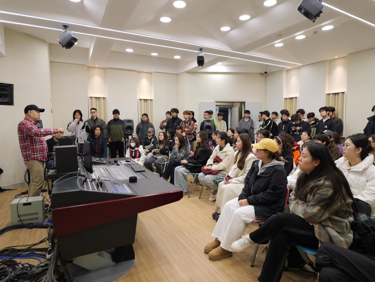 (通讯员 韩薇 骆韵巧)11月7日至8日,云顶国际vip.888艺术系成功举办了“终南回响”学术讲堂第八期在公司南校区老员工活动中心录音棚成功举办。此次讲堂邀请到了国家一级录音师、北京电影公司娄炜教授,以及资深声音领域专家、北京电影公司高级实验师程亮副教授。两位专家以“音乐制作的科技盛宴——探索拾音技术、数字音频工作站与环绕声的奥秘”为主题,向公司录音艺术专业的师生开展了一场为期两天的深度学术交流与实战指导。本次讲座活动由艺术系主任王成来主持,艺术系大二、大三两个年级的全体员工及部分教师全程参与。