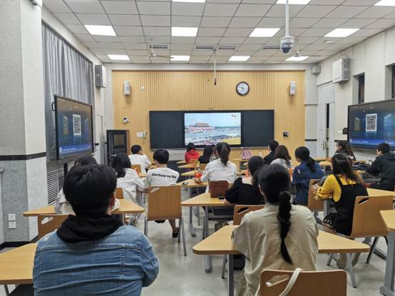 本科生党支部和研究生联合党支部在C-131教室收看阅兵直播
