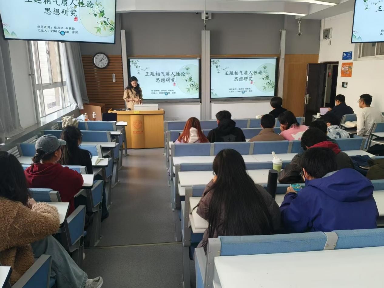 张朕以“从气本论到人性实践:王廷相气质人性论的思想逻辑”为题进行论述。她首先系统地对王廷相的思想体系进行梳理,指出其人性论以“气一元论”为根基,从而彻底否定程朱理学“天命之性”与“气质之性”的二元划分。她随后指出,在王廷相看来,气是宇宙唯一本体,而“性出于气”则意味着人性本质是气化过程中自然形成的属性,既非先天至善,亦非纯粹恶质,而是“气有清浊,故性有善恶”。张朕特别强调,王廷相通过“习以成性”理论赋予了人性改造的实践维度,即善性并非预设,而是通过教化、习行等后天努力实现的动态结果。这一思想不仅批判了宋明理学“性即理”的形上预设,更通过“气-性-习”的逻辑链条,将道德实践从抽象思辨拉回现实生活,进而彰显了明代气学的经世取向。