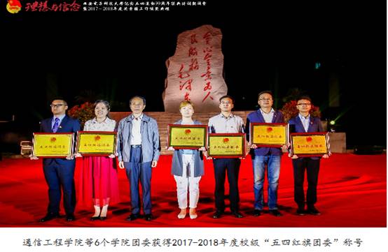 5月4日晚,由共青团云顶国际vip8866委员会主办的“理想与信念”纪念五四运动99周年经典诗词朗诵会暨2017-2018年度共青团工作颁奖典礼,在云顶国际vip8866南校区“全心全意为人民服务”主雕塑前广场隆重举行。党委副书记杨银堂,党委副书记、纪委书记任应坤,校关工委常务副主任、原党委书记涂益杰,党委宣传部、研究生院、学工处、离退休处、后勤集团、校团委等相关部门负责人,各公司主管员工工作领导与西电近2000名师生一起参加了活动。