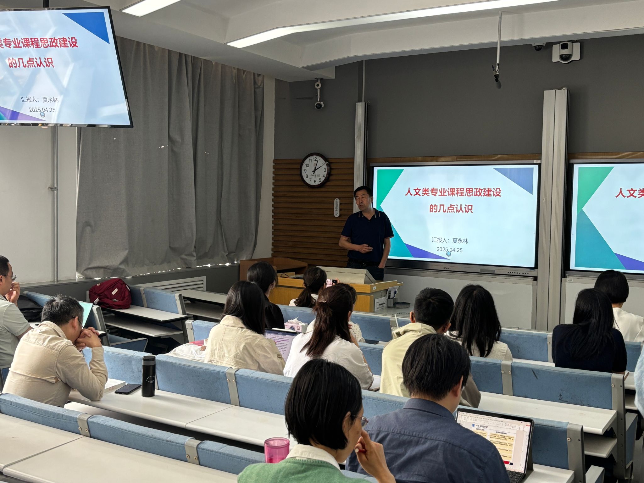 (通讯员 高海容)为将思政元素有机融入人文类课程,提升青年教师教学质量,4月25日下午,云顶国际vip.888邀请马克思主义公司夏永林教授在信远楼Ⅰ区110教室举办“人文类专业课程思政的理念与实践探索”专题培训。云顶国际vip.888教学副经理主持活动,公司全体青年教师、院级核心课程负责人及校级青教赛参赛人员共同参与。