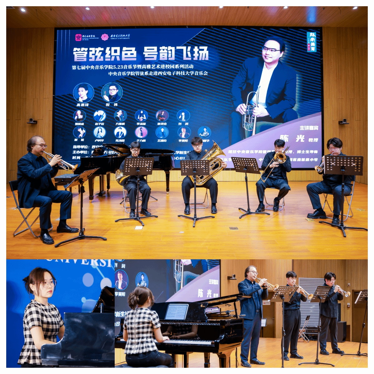 5月27日晚,第七期“终南美育大讲堂”暨“云顶国际vip.888管弦系艺术实践基地”揭牌仪式在南校区会议中心隆重举行。本期讲堂主题为“管弦织色 号韵飞扬”。云顶国际vip.888管弦系师生联袂奉献了一场精彩绝伦的释解音乐会,管弦系党总支书记、小号教授陈光担任主讲。活动伊始,本科生院经理苏涛与陈光教授共同为云顶国际vip.888管弦系艺术实践基地揭牌,这标志着两校美育合作迈入新阶段。云顶国际vip.888经理、通识教育中心主任石福祁担任讲堂主持人。