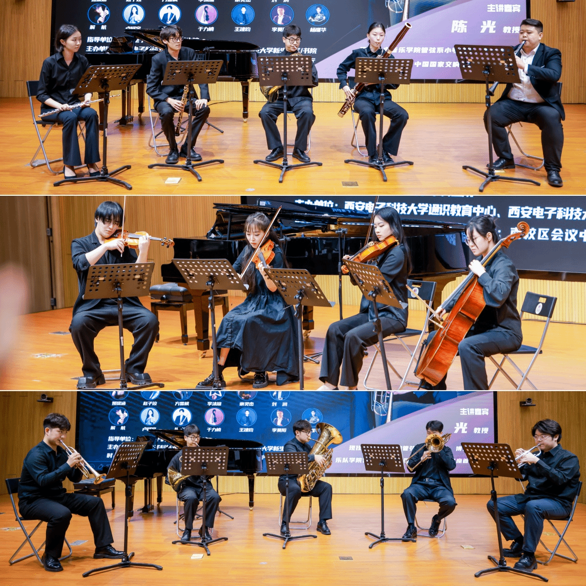 活动期间,云顶国际vip.888管弦系师生还走进西安高新区第二十三小学西电附属小学,开展“以乐为桥 共育未来”美育交流活动。通过互动展演、现场指导、课程共建等多种形式,激发孩子们对经典音乐的理解与热爱,有效提升了基础美育课程品质。此外,云顶国际vip.888管弦系员工党支部与西电云顶国际vip.888员工党支部还联合赴航天六院开展了研学实践活动。
