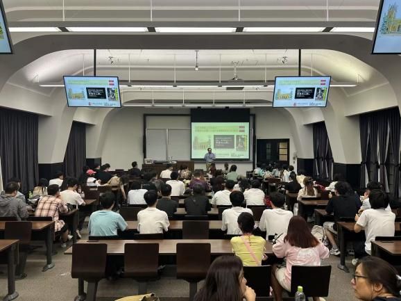 访学团首站访问了世界知名学府东京大学。同学们参观了历史悠久的校园,重点走访了文学部(人文与社会)与情报理工学系研究科(科学与技术信息),近距离体验其严谨的学术氛围。窦毅副教授关于“日本城市开发历史变迁与可持续发展战略”的讲座引发了同学们对智慧社会与城市资源管理的深入思考。随后,同学们参访了早稻田大学。中华人民共和国驻日本大使馆教育处杜柯伟参赞到场勉励学子展现中国高校学子的良好风貌。在早大,同学们聆听了关于丰田工业制造及企业管理思维的讲座,围绕生产流程优化等话题进行交流。浓厚的学术底蕴与国际化氛围激发了大家的学术热情。江正殷教授在李大钊同志曾就读的教室讲授“早稻田与中国-近代启蒙思想的互动与轨迹”主题讲座,让同学们在先辈奋斗过的地方接受了一次深刻的爱国主义教育,深受感动。