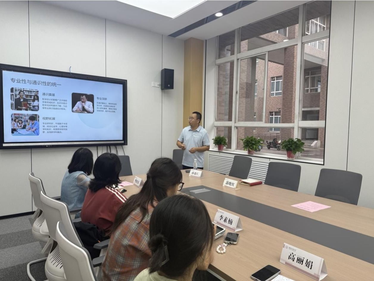 孙德仁老师首先向研究生新生的到来表示热烈欢迎,随后从哲学学科特点、研究生阶段学习模式的转变等方面出发,对研究生新生提出了端正学术道德和了解学术规范的几点要求。他谈道,学术道德是所有从事学术工作和专业学习的人要坚守的底线,不可有任何的侥幸心理,要做到尊重借鉴成果、注重调查研究和论证表达正确,时刻把学术诚信放在心上、落在实处。