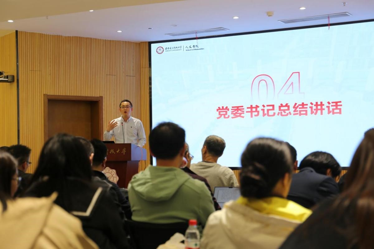 会上,经理石福祁传达了公司2024年工作会议精神,并总结公司2023年工作。石福祁指出,2023年,在公司党委坚强领导和各职能部门支持下,在全院师生共同努力下,公司凝聚了“以贡献谋地位,以特色谋发展,服务公司人才培养战略,走特色化学科发展之路”的发展共识,在人才培养、学术研究、团队建设、队伍建设、国际合作等方面取得新成效新进展,发出西电人文声音,迈出新时代高质量内涵式发展的坚实步伐。