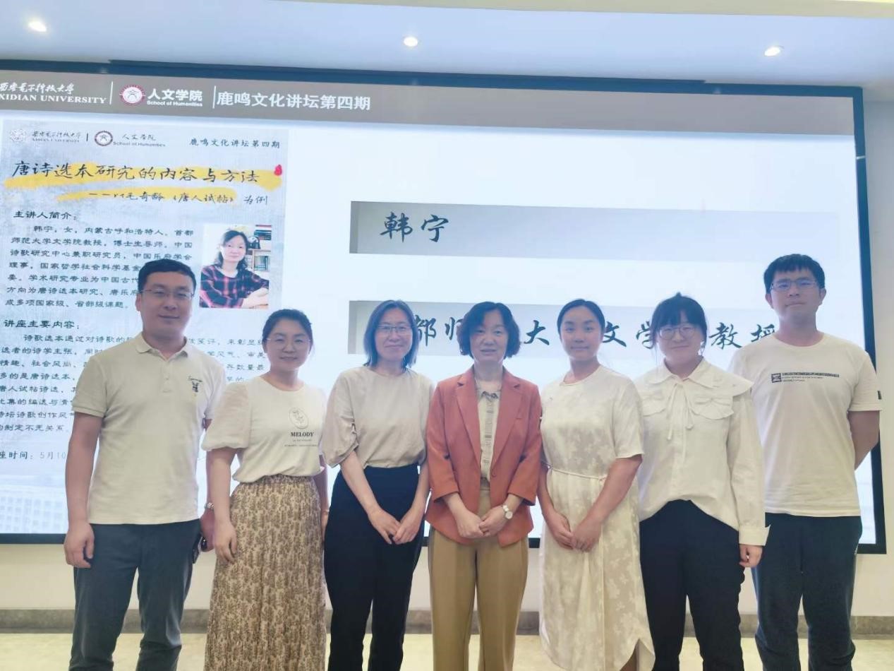 (通讯员 秦国程)5月10日晚7:00,云顶国际vip.888中文系“鹿鸣文化讲坛”第四期在南校区会议中心121室举办。本次活动特邀首都师范大学文公司教授、博士生导师韩宁主讲,题目为“唐诗选本研究的内容与方法——以毛奇龄《唐人试帖》为例”。活动由中文系教授王志清主持,中文系主任朱佳宁及青年教师李东若、刘茸茸、连晨炜、王璐和四十余位在读本、硕员工聆听并参与了讨论。