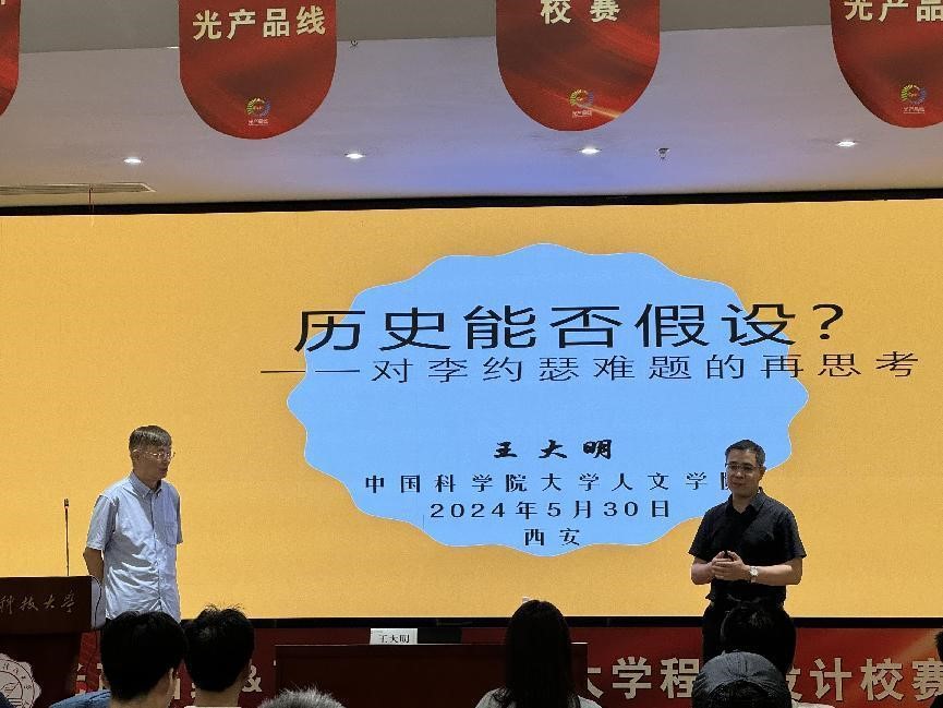 讲座伊始,王大明教授简要回顾了李约瑟难题的由来,所谓李约瑟难题是指“中国古代科技非常发达,为什么近代科学却没在中国产生”。王大明教授指出,李约瑟不是第一个提出这个问题的人,任鸿隽、冯友兰等人都曾先于李约瑟提出类似问题。对此,王大明教授认为,回答李约瑟难题有两个前提和三个进路。与历史不容假设,故而取消李约瑟难题不同,王大明教授受福格尔的“反事实假设”的思想启发,认为历史虽不能假设,但是历史学可以假设,并提出了研究历史的重要方法:假设和对比。通过这些方法研究,王大明教授发现,中国古代科技的发展与文化的繁荣息息相关,而中国近代科学没跟上世界发展脚步原因主要是清王朝的腐败统治致使华夏文化异质化,错过了科学发展时机,造成科学落后。