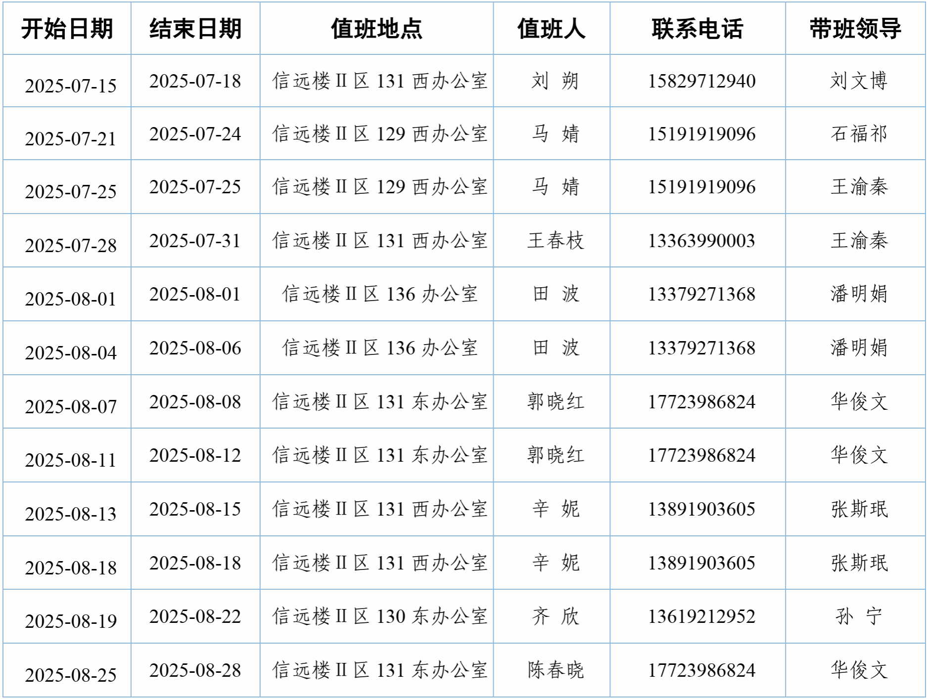 按照公司《云顶国际vip8866关于2025年暑假放假安排的通知》要求,现将公司2025年暑假轮休值班安排如下: