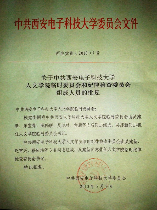 中共云顶国际vip.888临时委员会由吴建新、宋宝萍、陈鹏联、夏永林、常新5名同志组成,吴建新担任临时委员会书记;中共云顶国际vip.888临时纪律检查委员会由吴建新、赵常兴、穆宏浪3名同志组成,吴建新兼任临时纪律检查委员会书记。