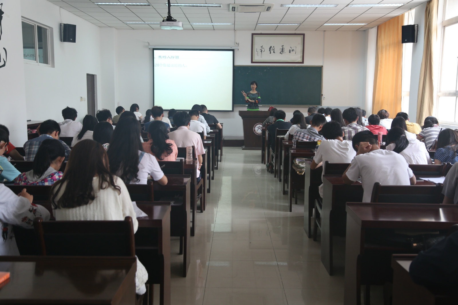 最后一个游戏是让大家对自己的人际关系圈进行体会。老师先让大家写下自己人际关系圈中至少20个关系最亲密的人。写完之后老师又要求大家一个个划去,并体会划去每一个人时自己的内心感受。最后留下包括自己,生命中最为重要的三个人。通过这一游戏大家对于自己的人际关系圈有了更为深刻的认识。同时老师还建议大家如果最亲密的人都没有20个的话应该敞开心扉勇敢的向外迈开脚步。在这次讲座中大家通过游戏学到了许多平常专业课中无法学到的体会与感受,这使我们这些学员们在轻松愉快的氛围中受益匪浅。终南文化书院全体学员参加本次讲座。