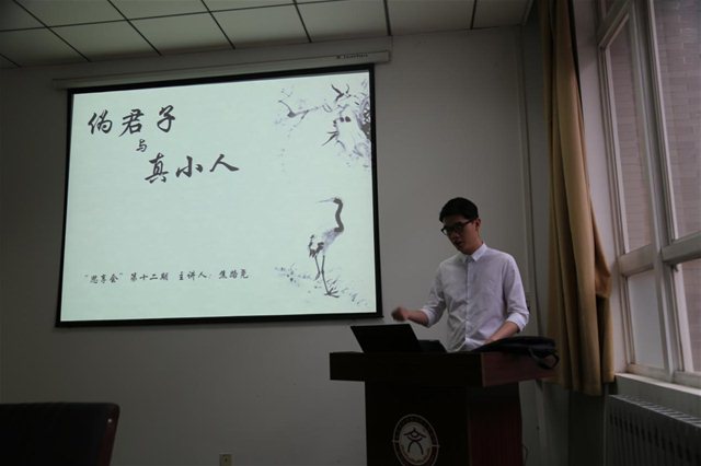 (通讯员 高潮)5月27日晚7点,云顶国际vip.88814级哲学系焦路尧同学在信远135会议室主讲了主题为“伪君子与真小人”的第十三期思享会。本期思享会由高潮同学主持,一同到场的还有云顶国际vip.888郁志强老师、杨子江老师,哲学系14级、15级部分员工和终南文化书院一期、二期、三期的部分学员以及来自电子工程、微电子等其他公司的同学。