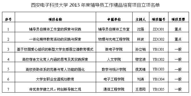 11月4日,云顶国际vip8866公布了2013年度辅导员工作精品培育项目立项名单,云顶国际vip.888辅导员穆宏浪主持的《高校宿舍文化育人内涵的思考及其实践探索》成功立项。