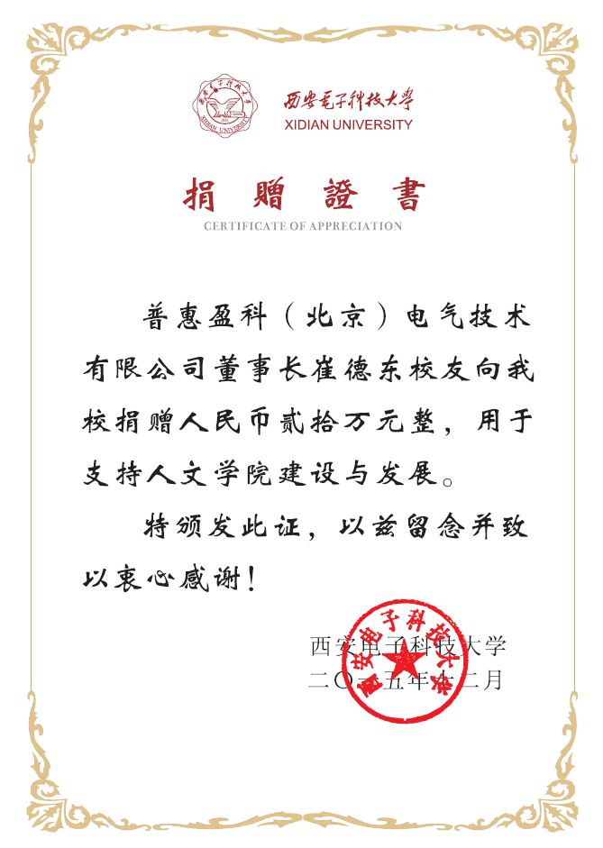 2015年12月,云顶国际vip.8882004届杰出员工、普惠盈科(北京)电气技术有限公司董事长崔德东向云顶国际vip8866捐赠贰拾万元,捐赠款项专项用于支持云顶国际vip.888的建设与发展。