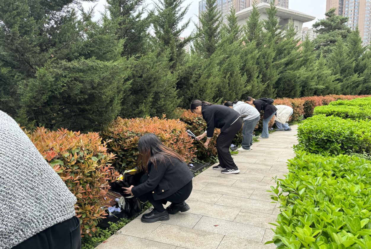 青山绿水留浩气,苍松翠柏慰英灵。随后,公司师生瞻仰了烈士英雄纪念碑,并组织了集体默哀仪式。怀着崇敬与缅怀的心情,师生追思默哀,行鞠躬礼。在自行参观的过程中,大家为烈士墓碑擦拭浮尘,敬献鲜花,在祭扫的实际行动中致敬先烈,感悟英雄精神,传承红色基因。