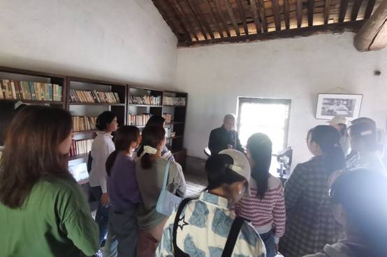 柳青于上世纪五十年代始长期扎根皇甫村体验农村生活,在积累了大量素材后,创作出了当代文坛反映农村生活的经典长篇小说《创业史》。在研学过程中,皇甫村村民刘田民老人热情地接待了研学团队一行人,一路担当讲解。老人已是七十有七的高龄,但身体健朗、精神矍铄。据了解,刘田民老人是《创业史》中人物“才娃”的原型,其父则是小说中人物“高增福”的原型。老人作为历史“亲历者”的生动讲解,具有鲜活的现场感染力,仿佛又把听众带入了那段不平凡的峥嵘岁月。在老人讲解结束时,研学团队一行报以热烈的掌声表达谢意。